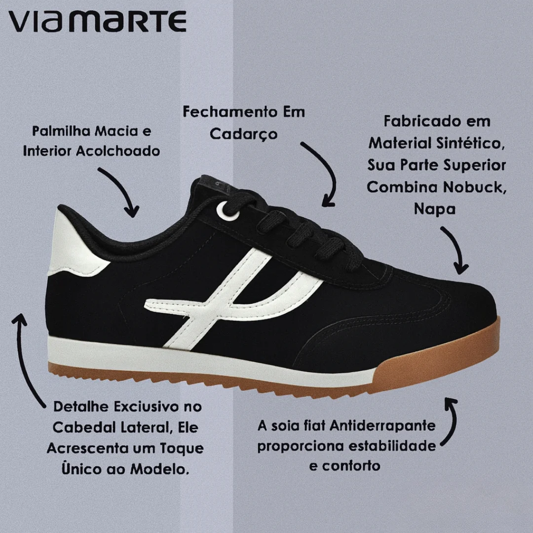 Tênis Feminino Casual Via Marte 237-003-01: conforto prolongado, calcanheira acolchoada e visual elegante para acompanhar sua rotina com leveza e segurança.
